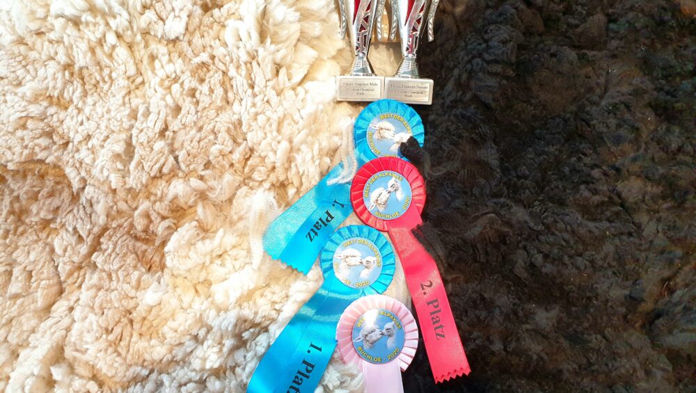 Anfang November fand in Buchloe (Deutschland) die Vliesshow / Welt der Alpakas statt. Wir sind stolz, dass unsere Alpakas wieder einige Auszeichnungen erzielen konnten. 🙂